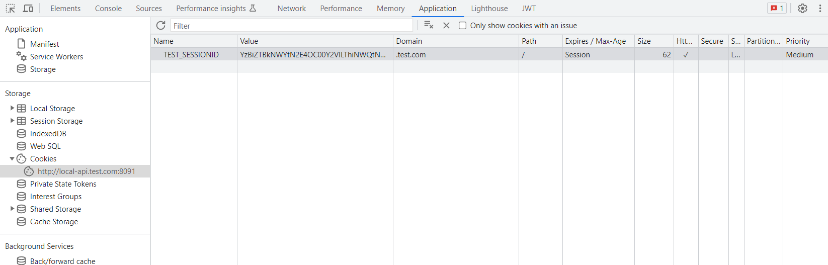 브라우저의 Cookie 결과를 보면 설정한대로 Cookie 속성이 설정되어 있음을 볼 수 있다.