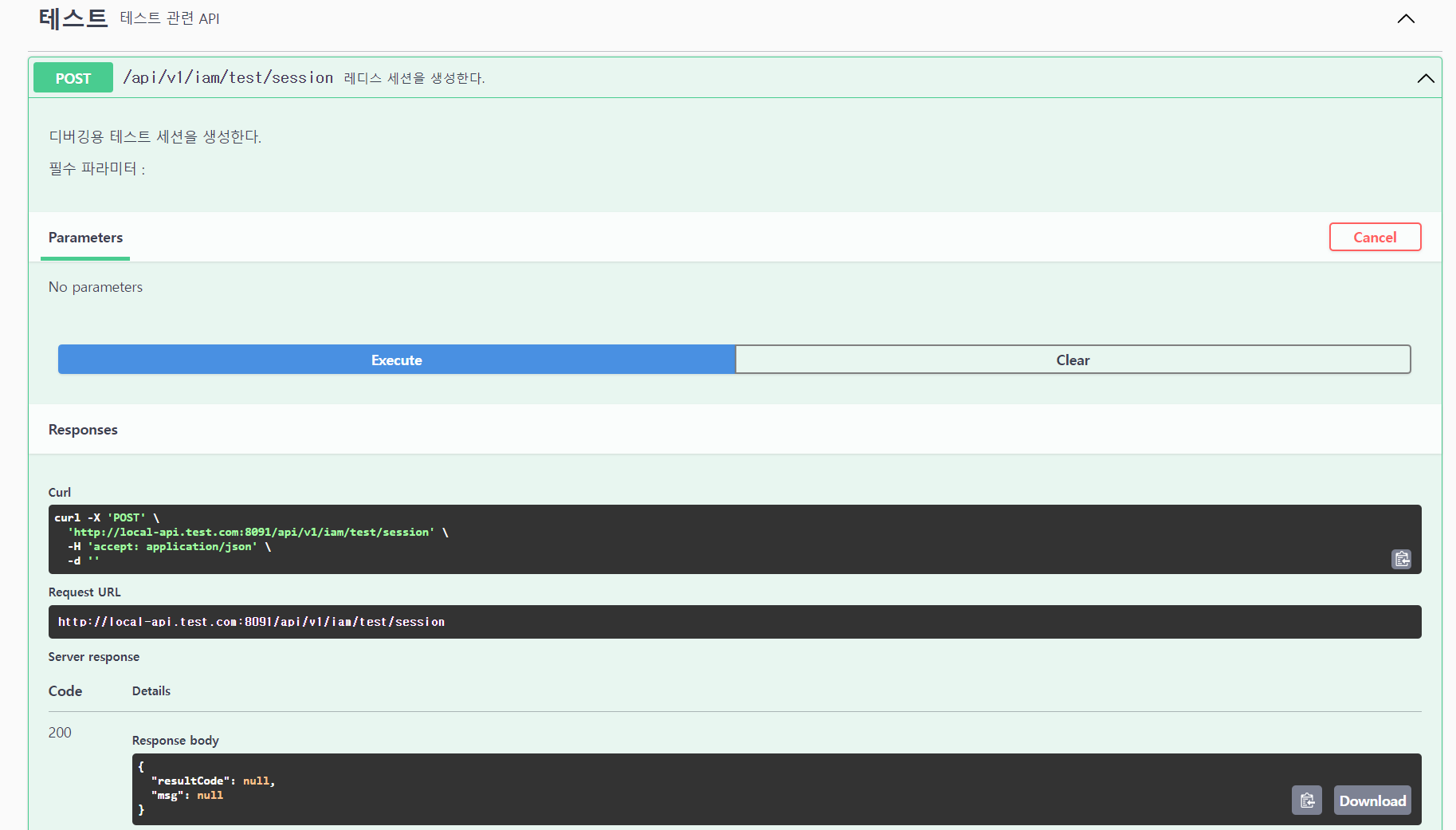 @Operation(summary = "레디스 세션을 생성한다.", description = "디버깅용 테스트 세션을 생성한다." + "\n\n" +