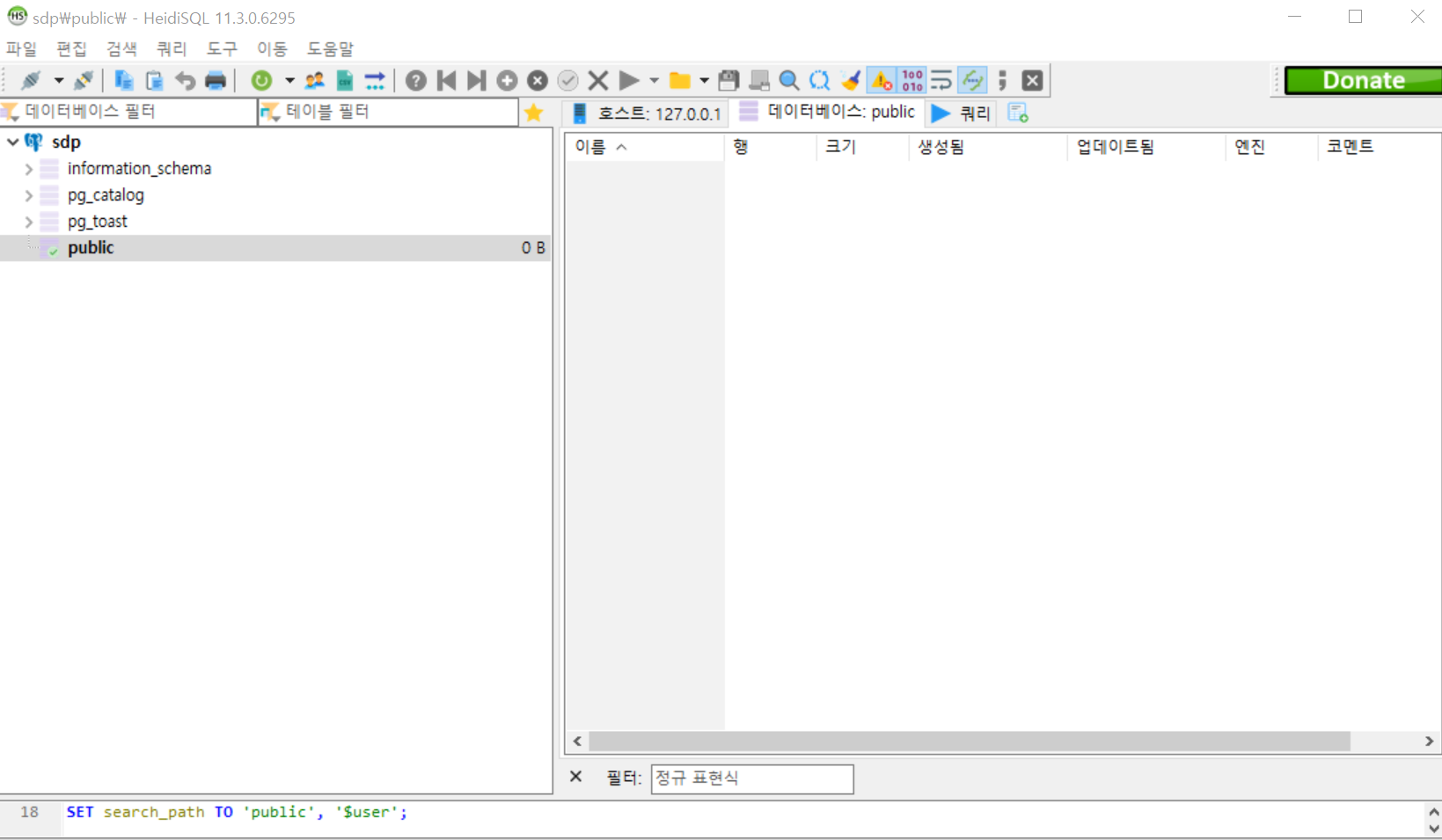 아래 복원테스트를 확인하기 위해 데이터 베이스 전체를 지운 모습이다.