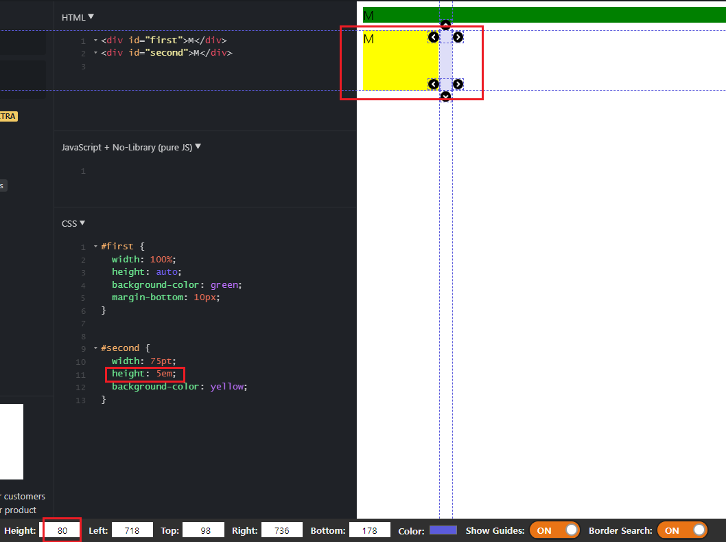 반대로 font-size를 10px로 줄일 경우, 상대 단위도 다음과 같이 비례해서 감소.
