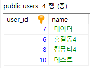INSERT INTO users VALUES (10, '테스트') RETURNING user_id