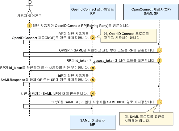 시나리오 3: OpenID Connect 제공자 및 SAML 서비스 제공자